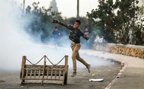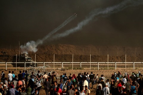 | L'armée israélienne tire des gaz lacrymogènes vers des manifestants palestiniens protestant contre le blocus de Gaza, le 27 juillet. |