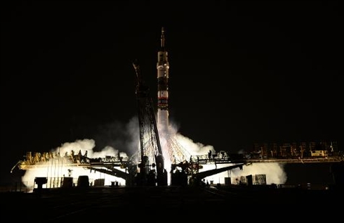 | Le Soyouz TMA-14M quitte le sol de Baïkonour, au Kazakhstan, le 26 septembre |