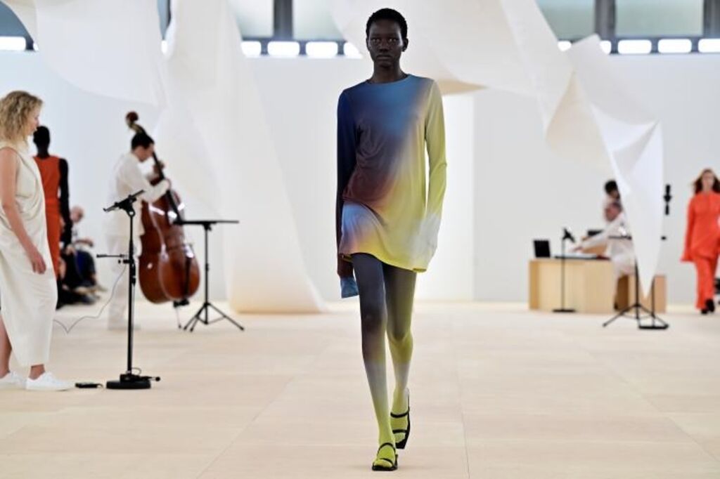 Les robes portées avec des sneakers ou des mules à petit talon carré sont plus habillées. Une longue robe drapée noire a ouvert le défilé vendredi 29 septembre, indiquant la direction de la collection.