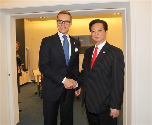 | Le Premier ministre vietnamien Nguyên Tân Dung (droite) et le Premier ministre finlandais Alexander Stubb. |