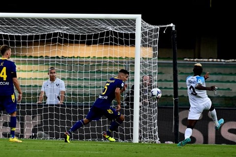 | Le Nigérian Victor Osimhen inscrit un but pour Naples contre l'Hellas, le 15 août à Vérone. |