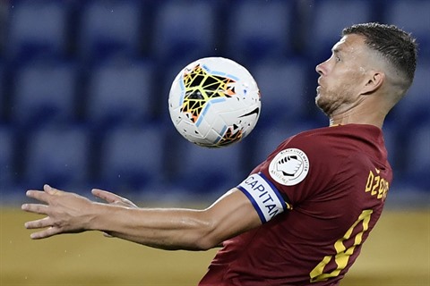 | L'attaquant de l'AS Rome, Edin Dzeko, auteur d'un doublé lors du match de Serie A face à la Sampdoria, à Rome, le 24 juin. |