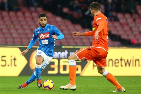 | L'attaquant de Naples, Lorenzo Insigne (gauche), face au milieu de la SPAL, Mattia Valoti, le 22 décembre à Naples. |