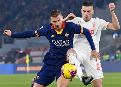 | L'attaquant bosnien de l'AS Rome, Edin Dzeko (gauche), à la lutte avec le défenseur turc de la Juventus Merih Demiral, le 12 janvier au stade Olympique de Rome. |