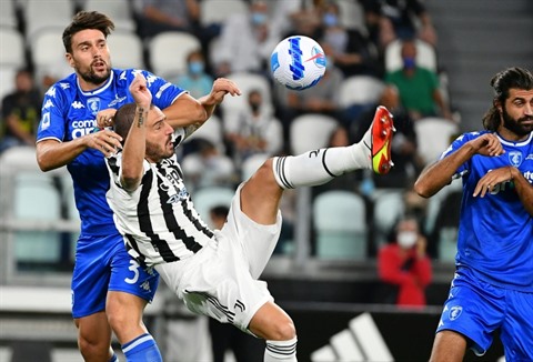 Le défenseur d'Empoli Riccardo Marchizza (gauche) accroche le défenseur de la Juventus Leonardo Bonucci, le 28 août à Turin. Photo : AFP/VNA/CVN |