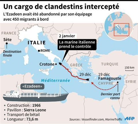 Le 20 décembre, ils étaient également 800 à bord d'un autre cargo parti lui aussi de Turquie.