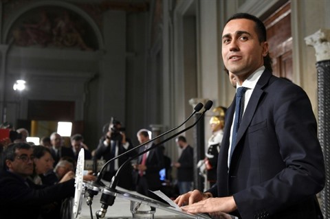 | Luigi Di Maio, chef du Mouvement 5 Étoiles, en conférence de presse à Rome, le 14 mai. |