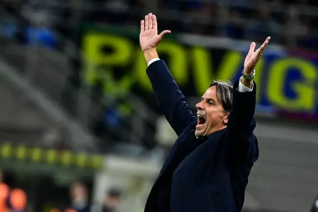 | L'entraîneur de l'Inter Milan Simone Inzaghi lors du match contre le Torino comptant pour la 7e journée du Championnat d'Italie, le 5 octobre à San Siro. |