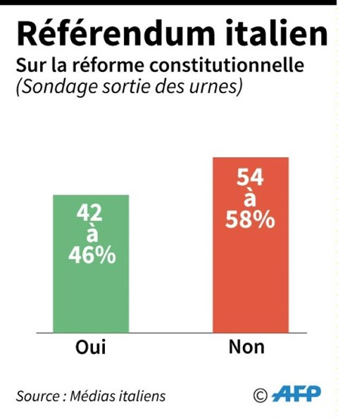 Une large majorité de la classe politique, de la droite classique aux populistes du Mouvement 5 Étoiles (M5S) ou de la Ligue du Nord, en passant par tous les extrêmes et même des "frondeurs" de gauche du PD de M. Renzi, avait appelé à voter "non", dénonçant une trop forte concentration des pouvoirs dans les mains du chef du gouvernement.