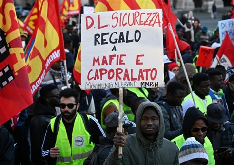 | Manifestation à Rome contre la politique sociale du gouvernement et son décret-loi réformant le système d'accueil des demandeurs d'asile, le 15 décembre 2018. |
