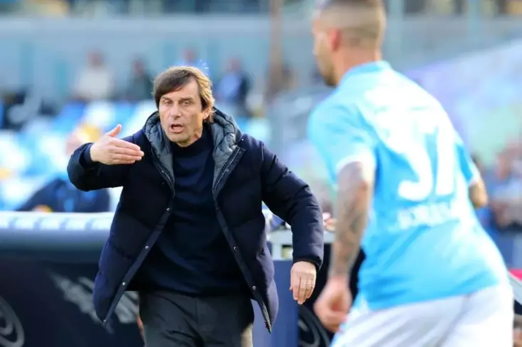 | L'entraîneur de Naples, Antonio Conte, durant le match de son équipe face à la Fiorentina (2-1), le 9 mars. |