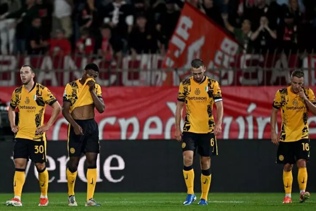 | Des joueurs de l'Inter Milan après leur nul (1-1) à Monza lors de la 4e journée du Championnat d'Italie le 15 septembre à Monza. |