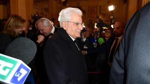 | Le président italien Sergio Mattarella arrive à la Scala de Milan pour la première d'"Attila" de Giuseppe Verdi, le 7 décembre. |
