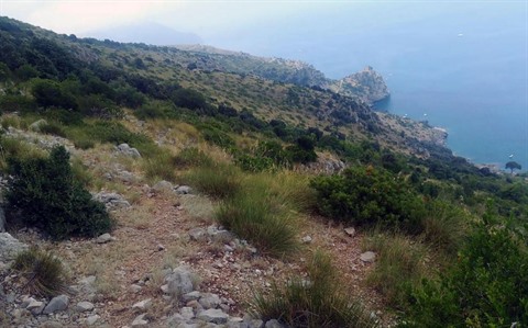 | Une partie de la zone de recherches où s'activent les secouristes pour retrouver Simon Gautier, jeune randonneur français qui s'est blessé il y a huit jours dans une vaste zone rocheuse, près de Policastro, à près de 200 km au Sud de Naples, le 16 août 2019. |