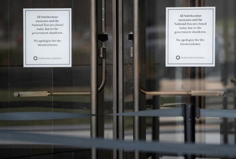 | Des notices affichées sur les portes du Musée national de l'histoire et de la culture afro-américaine informent de la fermeture de l'établissement en raison du "shutdown". Photo prise le 9 janvier. |