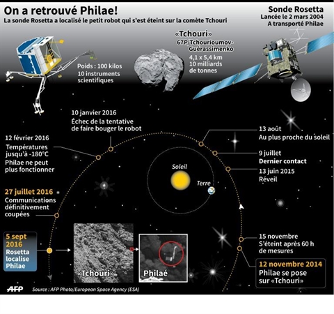 Cette heureuse découverte "ne change rien à l'avenir de Philae" dont la mission est terminée, a dit Philippe Gaudon, chef du projet Rosetta au CNES, l'agence spatiale française.