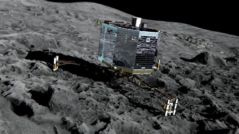 | Vue d'artiste du robot spatial Philae sur la comète Tchouri |