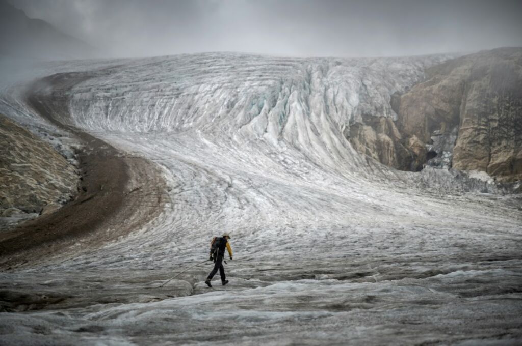 | Le Dr. Matthias Huss, directeur du Réseau suisse de relevés glaciologiques (Glamos), inspecte le glacier Gries, le 2 septembre en Suisse. |