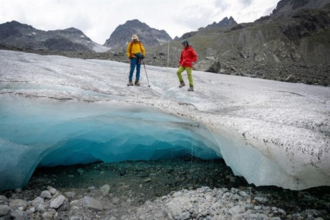 À 3.000 m d'altitude, dans la région de l'Engadine dans le Sud-Est de la Suisse et dans la partie sud du Valais "une couche de glace de 4 à 6 mètres d'épaisseur a disparu, c'est parfois deux fois plus que le maximum" enregistré jusqu'à présent.