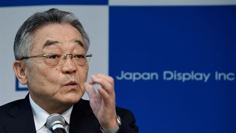 | Nobuhiro Higashiiriki, PDG de Japan Display, lors d'une conférence de presse à Tokyo, le 9 août. |
