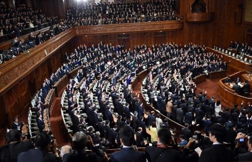 "Banzai, banzai, banzai" (longue vie à l'empereur), se sont exclamé les élus en levant les bras au ciel, avant de quitter les bancs de l'hémicycle plus ou moins contents, devant un M. Abe impassible.