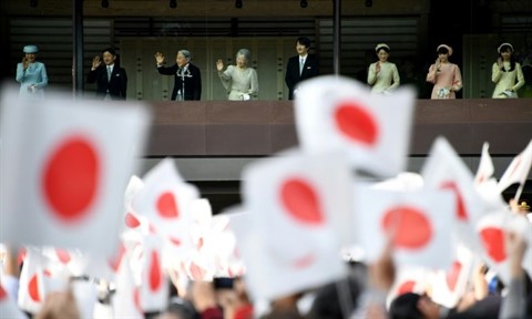 Le souverain et une partie de sa famille, dont le prince héritier Naruhito, sont apparus quelques minutes sur un balcon vitré d'un bâtiment impérial, sous le salut de milliers de petits drapeaux "hinomaru" agités par des Japonais de tous les âges criant "Banzai" ("Dix mille ans", signifiant "longue vie").