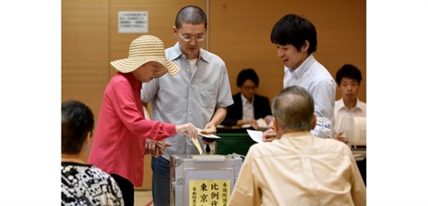 | Des Japonais aux urnes le 10 juillet 2016 à Tokyo. |