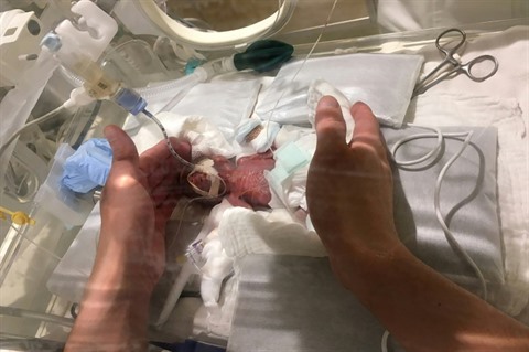 La naissance de ce fœtus avait été provoquée à 24 semaines d'aménorrhée (ou 22 semaines de grossesse), en raison d'un arrêt de croissance. Il était alors si petit qu'il tenait dans la paume de la main d'un adulte.