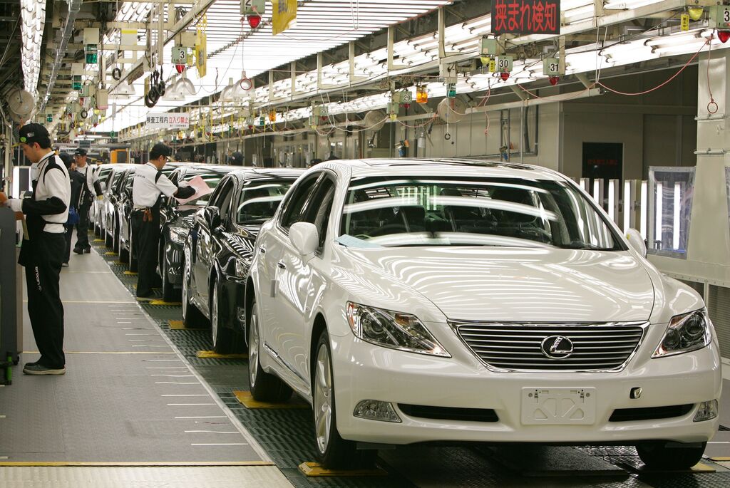 | La chaîne d'assemblage de voitures Toyota à Aichi, au Japon. |