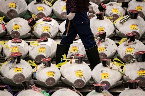 | Des thons congelés mis aux enchères, le 5 janvier à Tokyo. |
