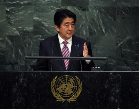 | Le Premier ministre Shinzo Abe s'adresse à l'assemblée générale de l'ONU, le 29 septembre, à New York |