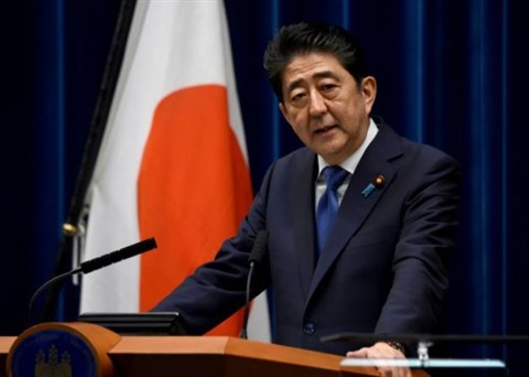 | Le Premier ministre japonais Shinzo Abe lors d'une conférence de presse à Tokyo, le 25 septembre. |