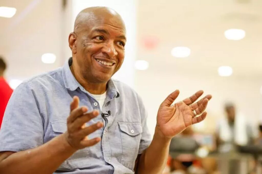 | Ralph McDaniels, le coordinateur hip-hop de la bibliothèque de l'arrondissement du Queens, à New York le 13 juillet 2023. |