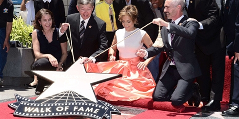 | Jennifer Lopez (2e à droite) recevant son étoile sur le "Hollywood Walk of Fame", le 20 juin 2013. |
