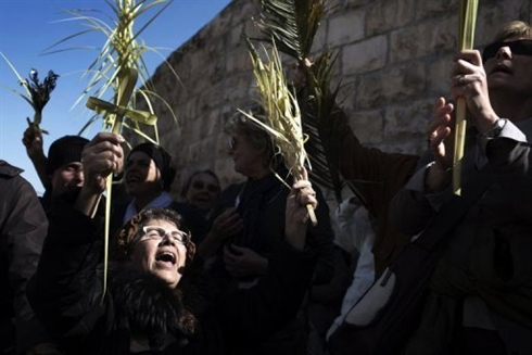 | Des pèlerins chrétiens pendant la procession des Rameaux à Jérusalem, le 24 mars. Photo : AFP/VNA/CVN |