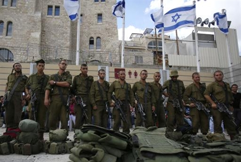 | Des soldats israéliens sont près de la Mosquée al-Aqsa, le 30 octobre à Jérusalem. |