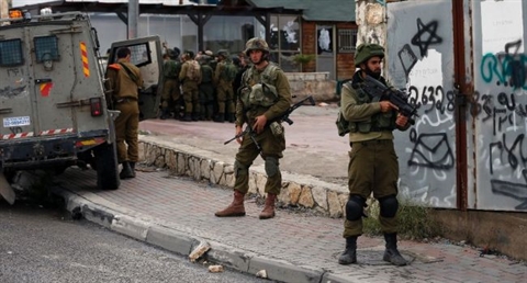| Des soldats israéliens à Hizma au nord de Jérusalem. |