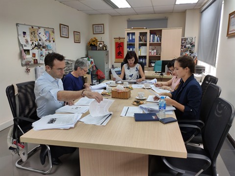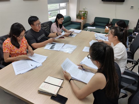| Le jury de la demi-finale, le 8 octobre, au siège social du Courrier du Vietnam à Hanoï. |