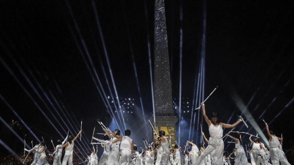 | Le spectacle "Paradoxe" lors de la cérémonie d'ouverture des Jeux paralympiques de Paris-2024, sur la place de la Concorde à Paris, le 28 août. |