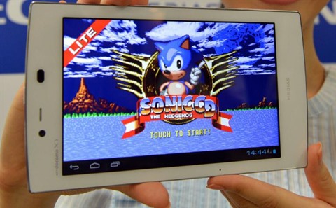 | Le jeu vidéo de Sega Sonic sur une tablette à Tokyo. |