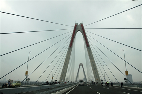 | Le pont Nhât Tân au-dessus du fleuve Rouge, à Hanoi, a été construit avec l'aide financière de la JICA. |