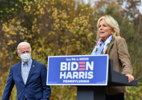 | Joe Biden et son épouse Jill Biden à Bristol (Pennsylvanie) le 24 octobre 2020. |