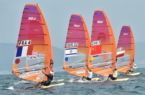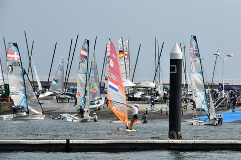 | Le test-event grandeur nature, à Enoshima, avec notamment la participation de la Française Charline Picon, le 21 août. |