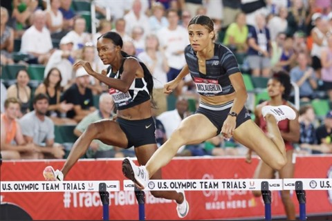 | Course relevée sur 400m haies aux Championnats US d'athlétisme, remportée par Sydney McLaughlin devant Dalilah Muhammad à Eugene, le 27 juin. |