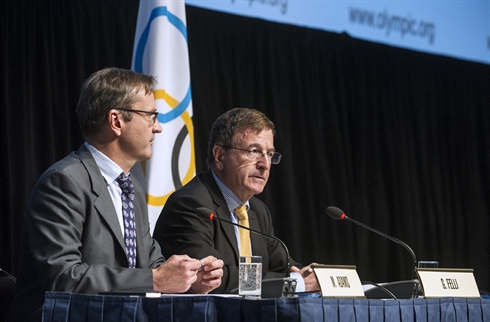 | Le directeur des Jeux olympiques au CIO, Gilbert Felli (droite), le 23 mai à Québec. Photo : AFP/VNA/CVN |