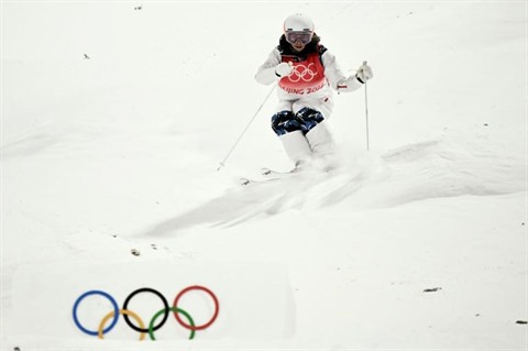 | La Française Perrine Laffont lors des qualifications du ski de bosses, le 3 février aux Jeux olympiques de Pékin |