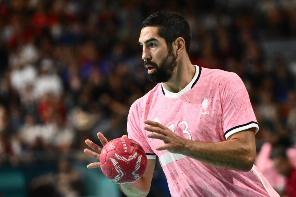 | Le handballeur français Nikola Karabatic le 2 août lors d'un match contre l'Argentine aux JO de Paris. |