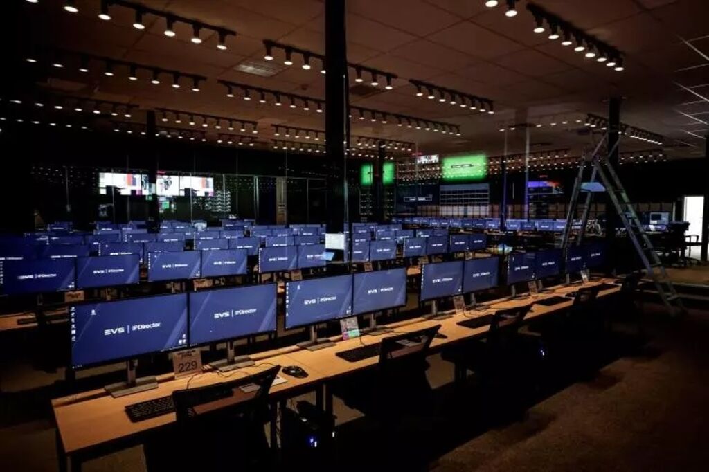 Cette base provisoire, cœur du réacteur vidéo des JO-2024, est installée dans le vaste Parc des expositions du Bourget (Seine-Saint-Denis).