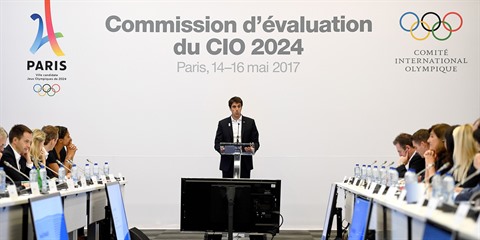 | Tony Estanguet s'exprimant devant les inspecteurs du CIO à Paris, le 14 mai. |