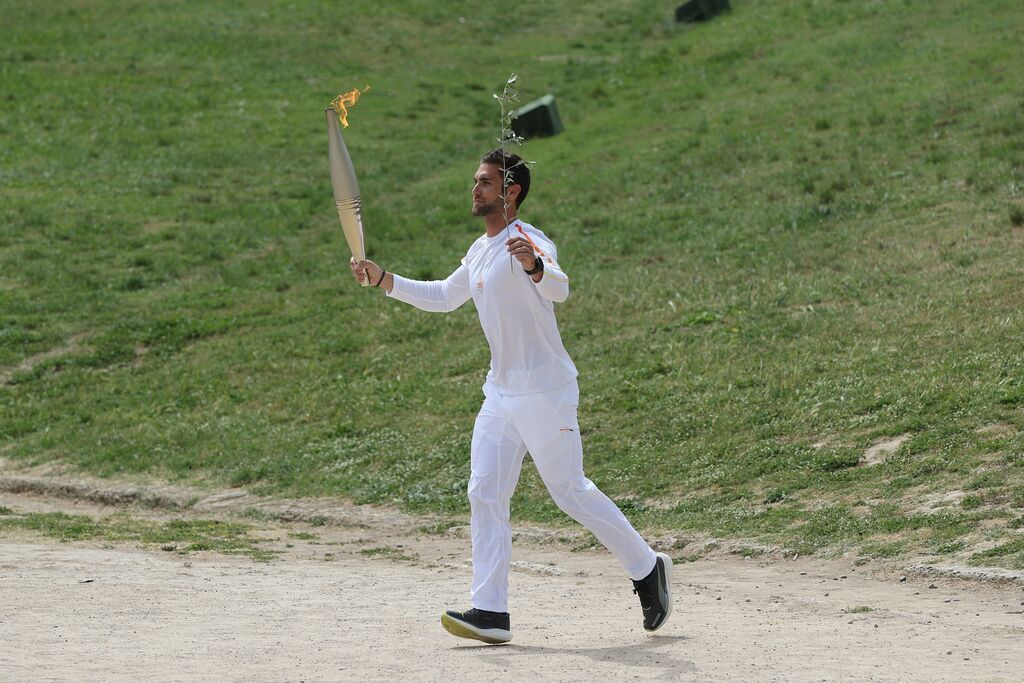 | Le premier porteur du flamme olympique, Stefanos Ntouskos. |